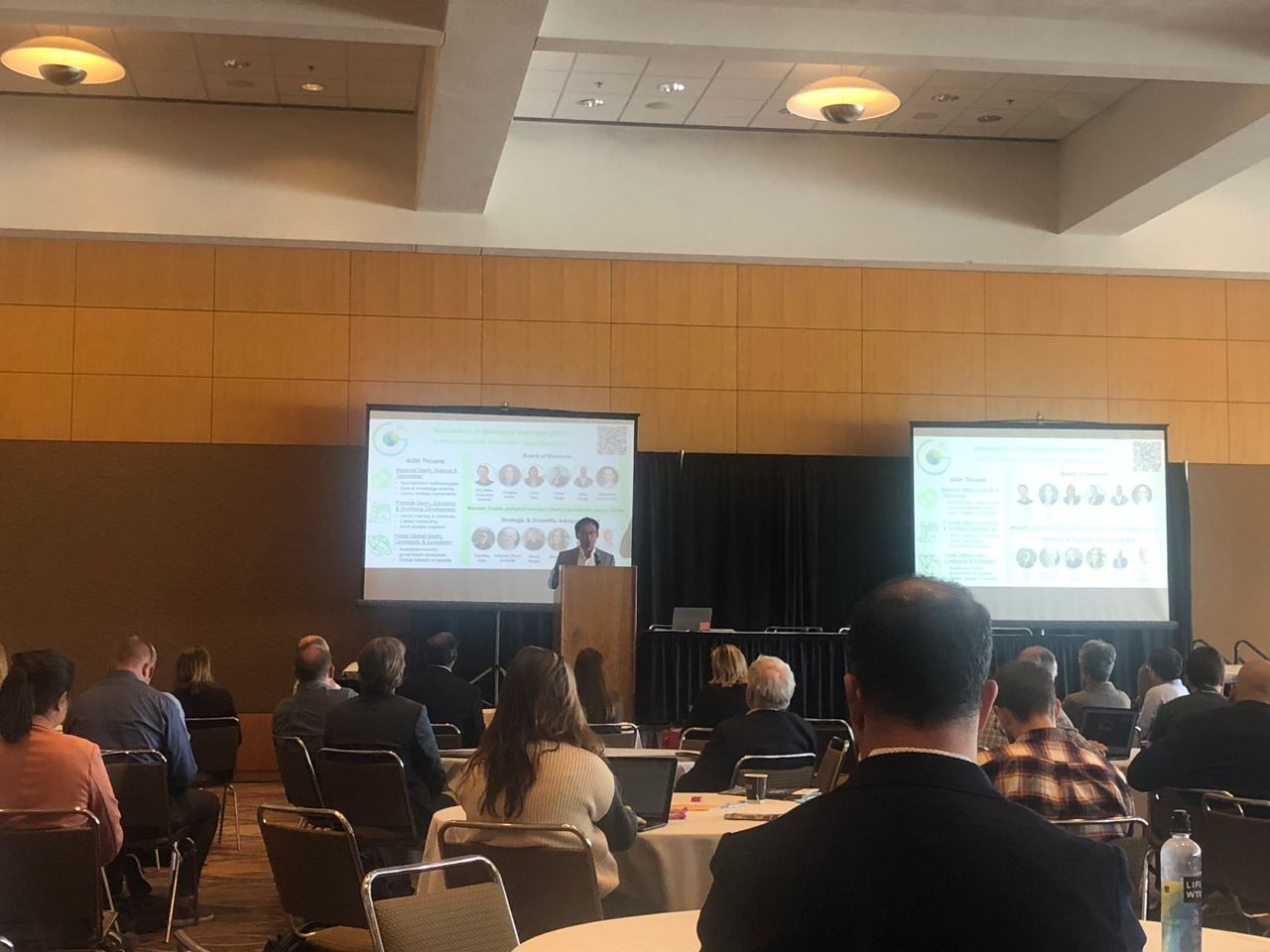 During the summit, Dr. Qingwang Yuan, Co-Founder and President of AGH, formally introduced the Association to this distinguished audience. He presented AGH’s mission and long-term vision, highlighted the expertise of its multidisciplinary team, and outlined the ongoing projects that aim to advance knowledge, innovation, and collaboration in the field of geologic hydrogen.
